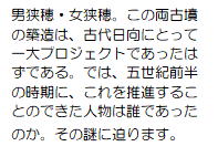 | 7 | 菜の花の丘 日向髪長媛(フィクション) 注↑これは、西都原を舞台とした小説(フィクション)です |